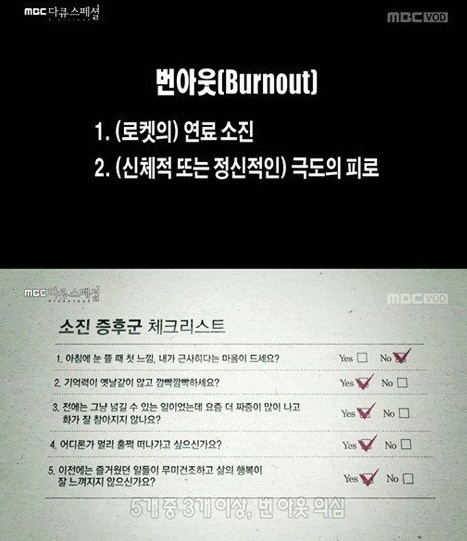 '번아웃 증후군'은 단순한 스트레스가 아닌 수면장애, 우울증, 심리적 회피, 인지능력 저하와 같은 질병까지 유발하고 있었고, 일 중독 사회의 새로운 스트레스 관련 문제로 대두했다.