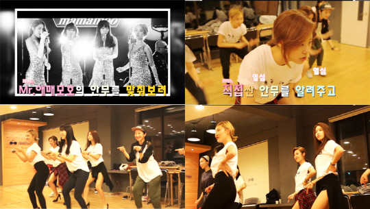 재기발랄한 무대 퍼포먼스와 뛰어난 가창력으로 대중의 눈과 귀를 사로잡은 화제의 신인 걸그룹 마마무(MAMAMOO)가 안무팀에게 타이틀곡 'Mr.애매모호' 댄스강의를 펼치는 모습이 공개돼 눈길을 끈다.