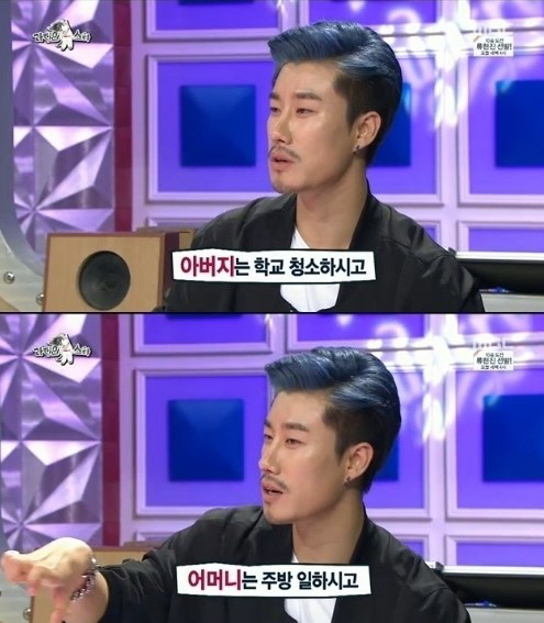 산이는 "아버지는 학교 청소를 하시고 어머니는 주방에서 일하신다"고 고백했다.