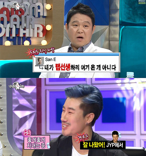 그러나 산이는 "지금도 JYP와 좋게좋게 잘 지내고 있다"고 수습했고, 김구라는 "좋게는 지내는데 나오긴 잘 나왔다"며 끝까지 우겨 폭소케 했다.