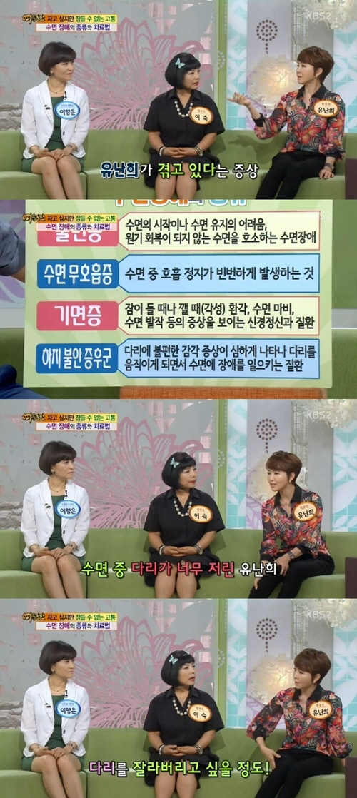 유난희 하지 불안 증후군 때문에 잠자는 것도 힘들겠다", "