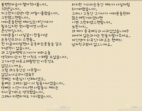 채림은 4일 자신의 웨이보에 "지금까지 하지 않았고 앞으로도 하지 않을 이야기"라며 장문의 글을 게재했다.