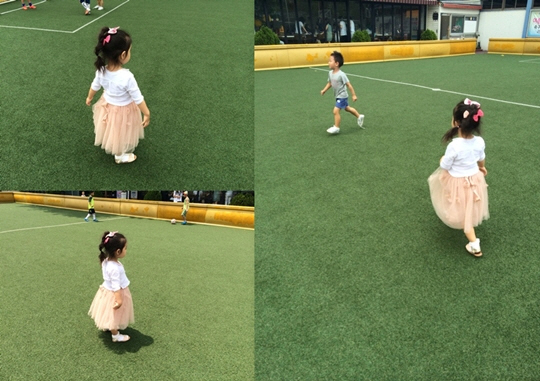 또 '신나는 토요일'이라는 제목으로 올린 포스트에는 딸의 모습이 살짝 엿보였다. "오랜만에 만난 친구들과 같이 놀고 싶은데 다 남자아이들인지라 우리 공주에게 패스 안해주고 (절친들이 다 아들만 낳음)"이라며, "아쉬움과 애써 쿨한 척하는게 온몸으로 티가 나는 우리딸 귀요미"라는 글과 함께 사진들을 게재했다.