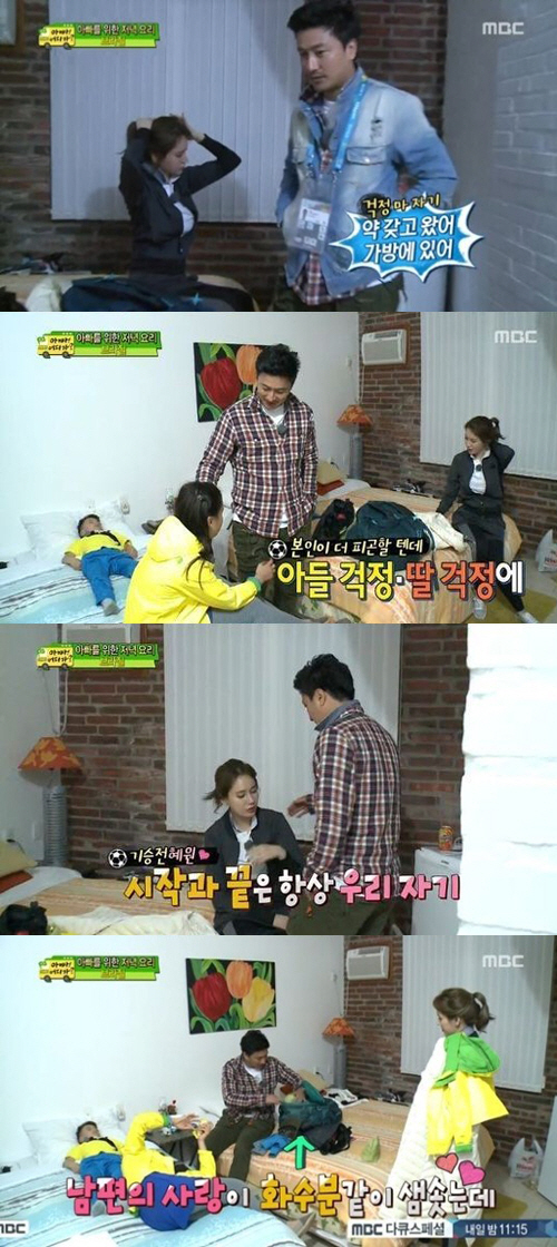 한편 이날 방송에서는 브라질에서 고생 중인 남편들을 위해 아내들이 직접 밥상을 준비했다. 밥상이 준비되자 안정환은 이혜원에게 "자기야"라고 부르며 반찬을 직접 떠주는 등 닭살 애정으로 보는 이들의 부러움을 샀다.