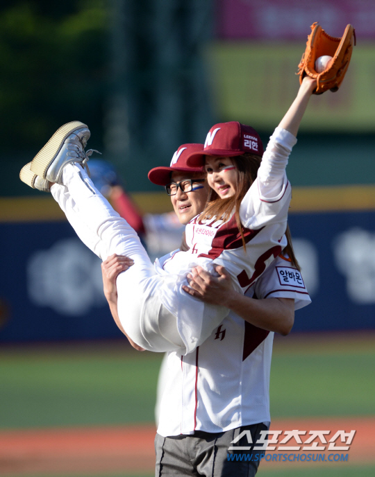 특히 시구 시타를 마친 뒤 지상렬은 박준금을 번쩍 안고 나오는 퍼포먼스를 선보였고, 이에 박준금은 다리를 일자로 뻗고 손을 흔들면서 팬서비스를 해 현장을 찾은 야구팬들에게 웃음을 안겼다.