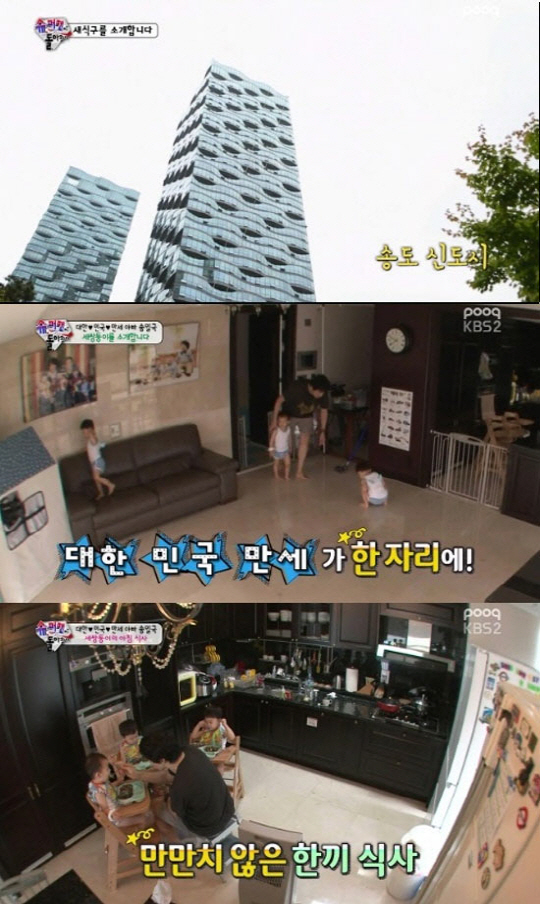 6일 방송된 KBS 2TV '해피선데이-슈퍼맨이 돌아왔다"에서는 송일국과 세 아들 대한, 민국, 만세가 첫 출연해 눈길을 끌었다.
