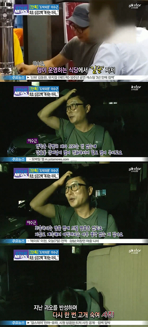 이날 방송에서는 불법 도박 혐의로 자숙 중인 이수근이 친형이 운영하는 음식점에서 일을 도우며 지내는 모습이 공개돼 눈길을 끌었다.