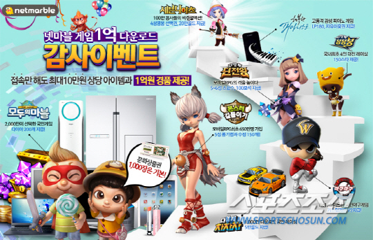 넷마블은 국내 서비스 중인 모바일게임들의 누적 다운로드 1억 돌파를 기념하는 이벤트를 실시한다.