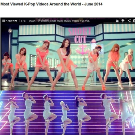 AOA '단발머리' 뮤직비디오가 전세계에서 가장 많이 시청한 K팝 뮤비 차트 TOP8에 걸그룹으로 유일하게 이름을 올렸다.