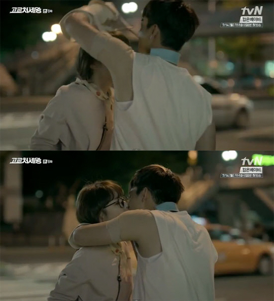 8일 방송된 tvN 월화드라마 '고교처세왕' 8회에서 이민석(서인국 분)은 자신의 고백을 받아준 정수영(이하나 분)에게 깁스한 팔로 목을 감싸 안고 키스를 하며 일며 '깁스키스'라는 명장면을 탄생시켰다.