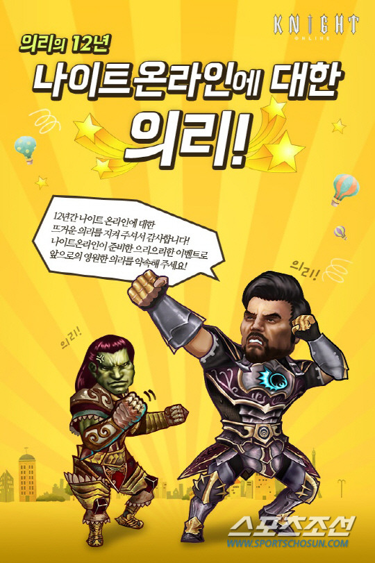 엠게임은 장수 MMORPG '나이트 온라인'의 서비스 12주년을 맞아 오는 8월 6일까지 '나이트 온라인에 대한 의리!' 이벤트를 실시한다.