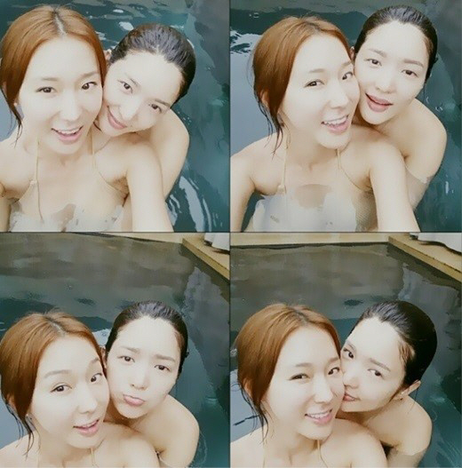 공개된 사진에서 이지혜와 서지영은 수영복 차림으로 물속에 몸을 담근 채 위를 바라보며 서로를 다정하게 껴안고 있다. 이지혜와 서지영이 볼 뽀뽀까지 하고 있어 소문과는 다른 친분을 짐작케 한다.