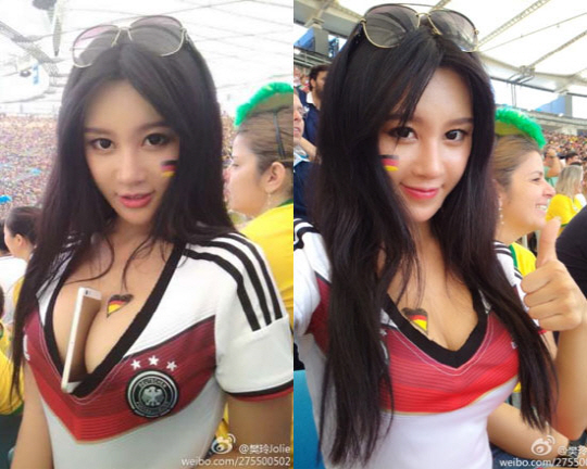 'G컵녀' 판링의 응원 때문에 독일이 승리했나?"등의 다양한 반응을 보이고 있다. <스포츠조선닷컴>