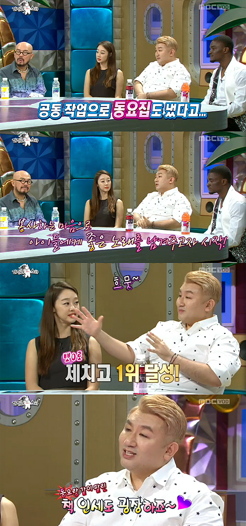 이날 MC 김구라는 "방시혁이 공동작업으로 동요집을 냈는데 뽀로로를 이겼다고 하더라. 사실이냐"고 물었다.