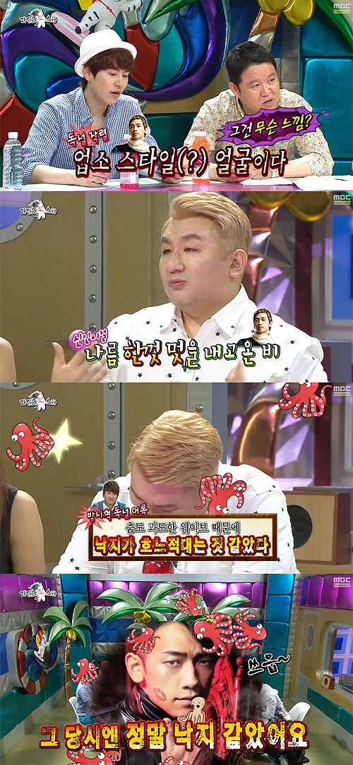 이에 MC 규현은 "방시혁이 당시 '학교에서 날리던 친구였는데 완성된 춤도 아니고 춤도 과도한 웨이브 때문에 낙지가 흐느적대는 것 같았다'고 비에게 말했다더라"고 폭로했다.