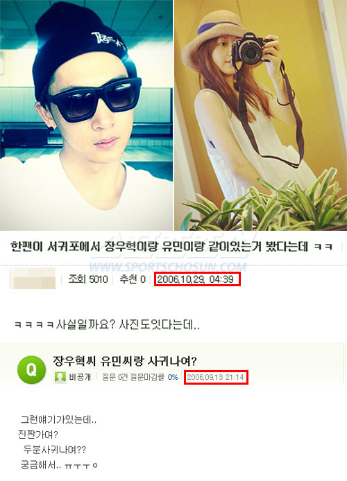 한 네티즌은 2006년 9월 포털사이트 게시판에 "장우혁 씨 유민 씨랑 사귀나요? 그런 얘기가 있는데 진짜인가요? 두 분 사귀나요? 궁금해서"라고 두 사람의 관계를 묻는 질문을 게재했다.