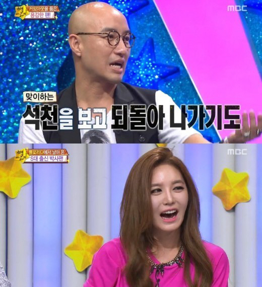 이날 홍석천은 강예빈을 향해 몹시 불만스런 표정으로 "저 분과 제가 이상형이 겹친다"고 말문을 열었다.