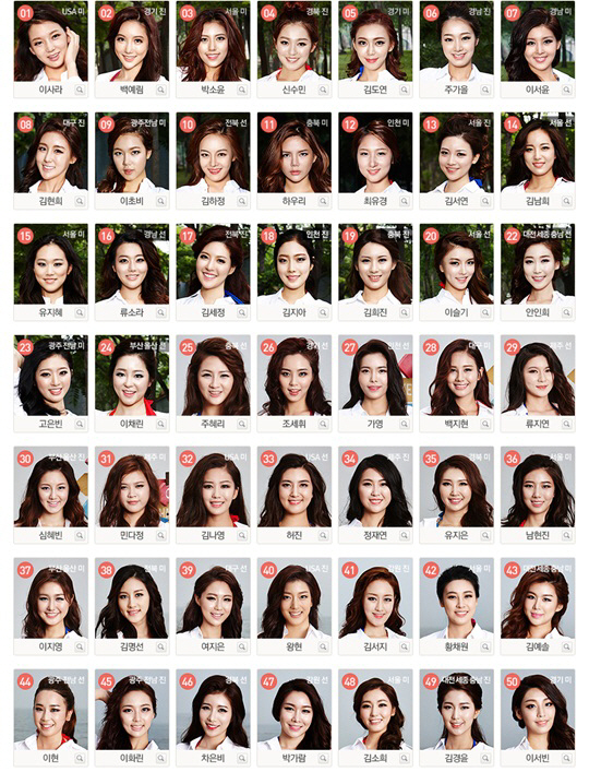 미스코리아 인기투표, 미녀 후보자 50인 사진 공개 ‘누가 더 예쁘나?’
