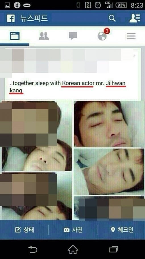 앞서 같은 날 한 필리핀 여성이 자신의 SNS에 "한국 배우 강지환과 함께 잤다"(together sleep with Korean actor mr. ji hwan Kang)는 글과 함께 침대에 누워있는 강지환과 함께 찍은 사진을 게재해 궁금증을 자아냈다.