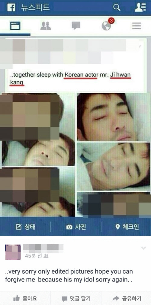 앞서 이 여성은 "한국 배우 강지환과 함께 잤다(together sleep with Korean actor mr. ji hwan Kang)"는 메시지와 함께 침대에서 잠을 자고 있는 강지환 옆에서 찍은 사진을 공개해 논란을 일으켰다.