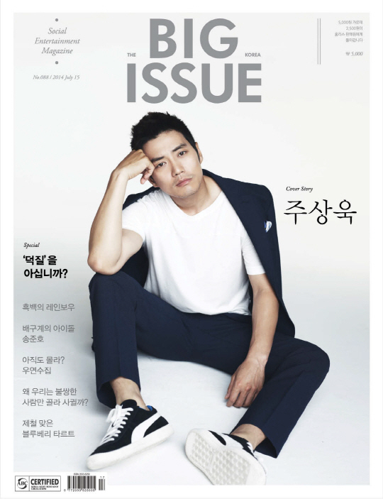 배우 주상욱이 잡지 '빅이슈'의 커버를 장식했다. 이번 화보는 평소 주상욱과 친분이 깊은 포토그래퍼 김영준이 재능기부로 참여했다.