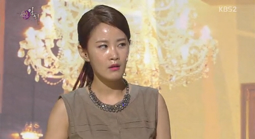 이날 김지민은 KBS 2TV '개그콘서트-쉰 밀회' 코너에서 김희애를 패러디한 물광 피부 표현 방법에 대한 질문을 받았다.