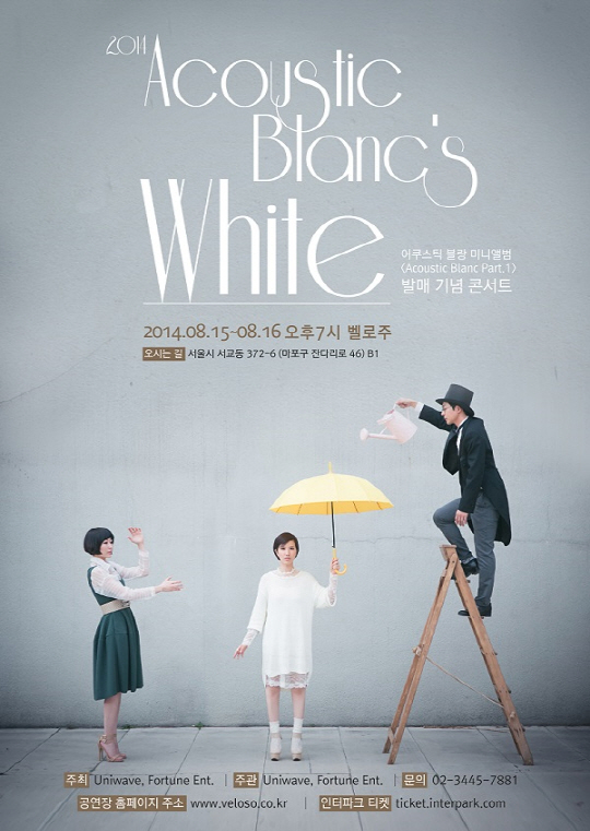 어쿠스틱 블랑은 8월 15일과 16일 서울특별시 마포구에 위치한 벨로주에서 밴드 결성 후 첫 공연 '어쿠스틱 블랑 화이트'를 열고 관객과 가까운 곳에서 만난다.