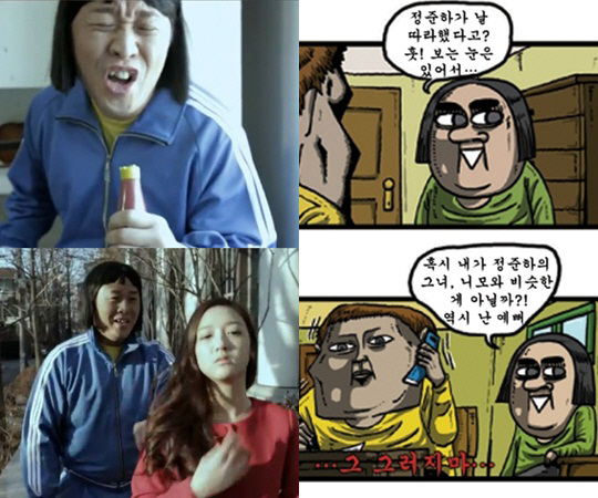 이에 조석은 '마음의 소리' 웹툰에서 "정준하가 날 따라했다고? 훗! 보는 눈은 있어서"라며 "혹시 내가 정준하의 그녀, 니모와 비슷한 게 아닐까?!"라는 대사로