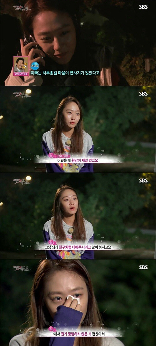 이어 "그런데 지금 같은 일을 하다 보니까 '그럴 수밖에 없겠구나'라고 이해하게 됐다. 지금은 친하게 지낸다. 아빠가 친구처럼 대해주려고 노력한다"며 참았던 눈물을 흘렸다.