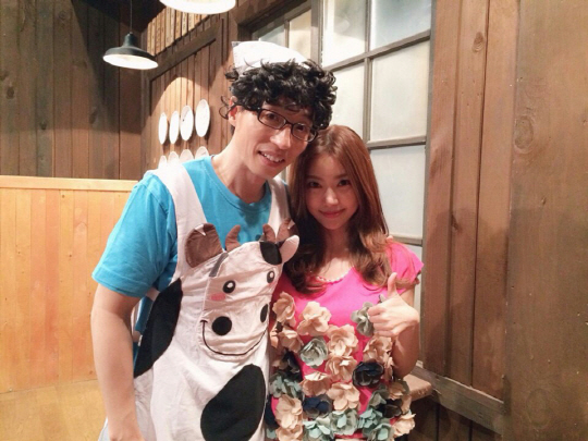 공개된 사진 속에는 해피투게더의 대표코너인 야간매점 녹화현장에서 유재석과 함께 어깨동무를 하며 다정한 포즈의 레이디제인이 엄지를 치켜 들며 행복한 미소를 지어 보이고 있다. 특히 뽀얀 피부와 똘망똘망한 눈망울로 카메라를 응시하는 레이디제인의 물오른 미모에 눈길이 모아진다.