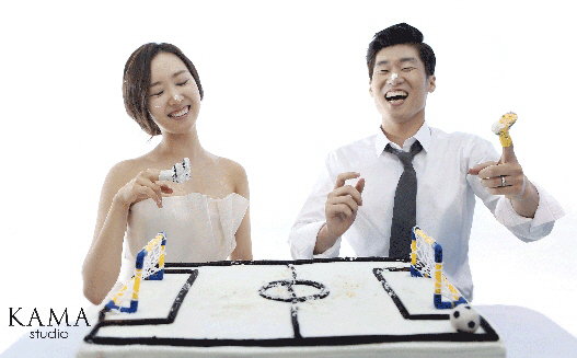 촬영을 준비한 카마조 작가는 "두사람의 웨딩화보는 멋있는 화보이기 전에 두사람에게 추억이 될 수 있는 재미있고 다양한 데이트 이벤트를 열어주고 싶었다"며, 케?揚막 만든 미니 축구장에서의 데이트 등을 통해 두사람에게 즐거운 추억을 만들어 주었다.
