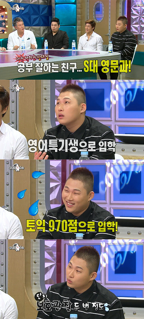 이에 대해 스윙스는 "일반 전형은 아니다. 외국에서 살다 오긴 했다. 토익 970점을 받고 영어 특기생으로 입학했다"고 설명했다.