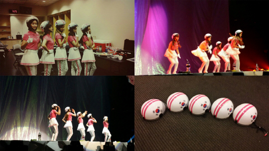 크레용팝이 제헌절을 기념해 헬멧에 태극기를 붙이고 레이디 가가 콘서트 무대에 올라 화제다.