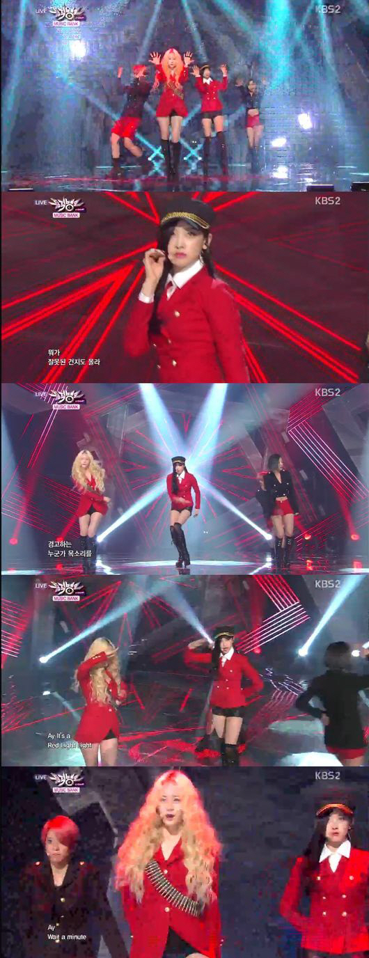 에프엑스는 18일 방송된 KBS 2TV '뮤직뱅크'에서 설리의 빈자리에도 불구하고 타이틀곡 '레드 라이트' 무대를 완벽하게 소화했다.
