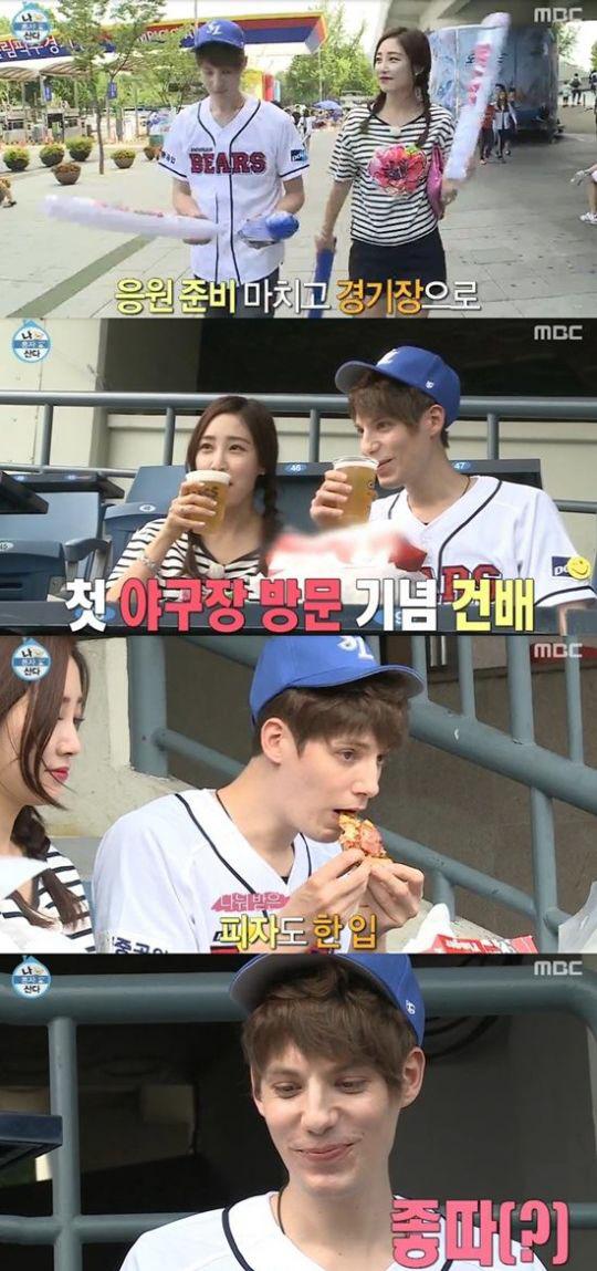이후 두 사람은 야구장 하면 빠질 수 없는 치킨을 샀고, 옆 자리 좌석에 앉은 관람객들이 피자까지 나눠줬다. 또한 두 사람은 '맥주 보이'에게 맥주를 구입해 피자와 맥주를 폭풍 흡입했다.