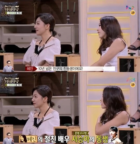 한혜진은 "고등학교 때부터 알던 친구의 친동생이 이채영이다"라며, 이채영의 언니 배우 서승아가 한혜진이 10년 지기 친구인 것.