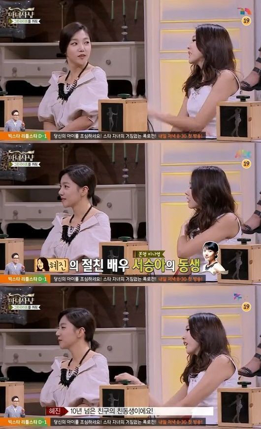 이채영의 언니이자 한혜진이 언급한 친구는 모델과 배우로 활동한 바 있는 서승아로 KBS 드라마 '학교4', '드라마시티-쑥과 마늘에 관한 진실', EBS 드라마 '네꿈을 펼쳐라', 영화 '7인의 새벽'에 출연한 바 있다.