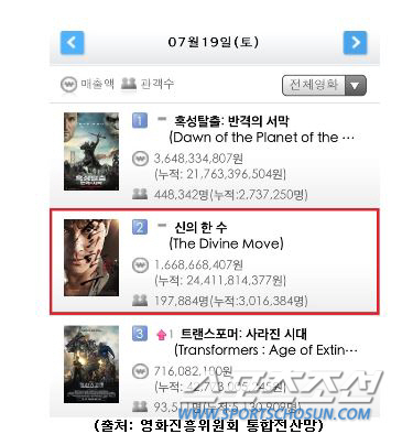 더불어 '신의 한 수'의 주연인 정우성은 2008년 '좋은 놈, 나쁜 놈, 이상한 놈', 지난해 '감시자들'에 이어 '신의 한 수'까지 할리우드 저격수의 위력을 다시 한 번 확인시켜줬다.