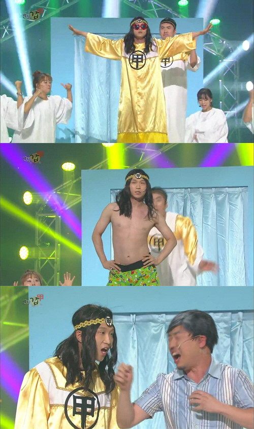 20일 방송된 KBS2 '개그콘서트'에서 박성광은 '멘탈갑'이란 새 코너를 선보였다. 이날 박성광은 멘탈의 신 '멘갑' 교주로 등장, "축구에 지고도 다음날 회식할 수 있는 강한 멘탈로 살 수 있게 해주겠다"는 등 사회적 이슈를 풍자해 웃음을 선사했다. 함께 출연한 이상훈 역시 아베 총리를 디스, "세계적으로 욕을 먹는 멘탈갑"이라며 "독도는 우리땅이란 티셔츠를 선물하겠다"고 마해 방청객들의 박수를 받았다.