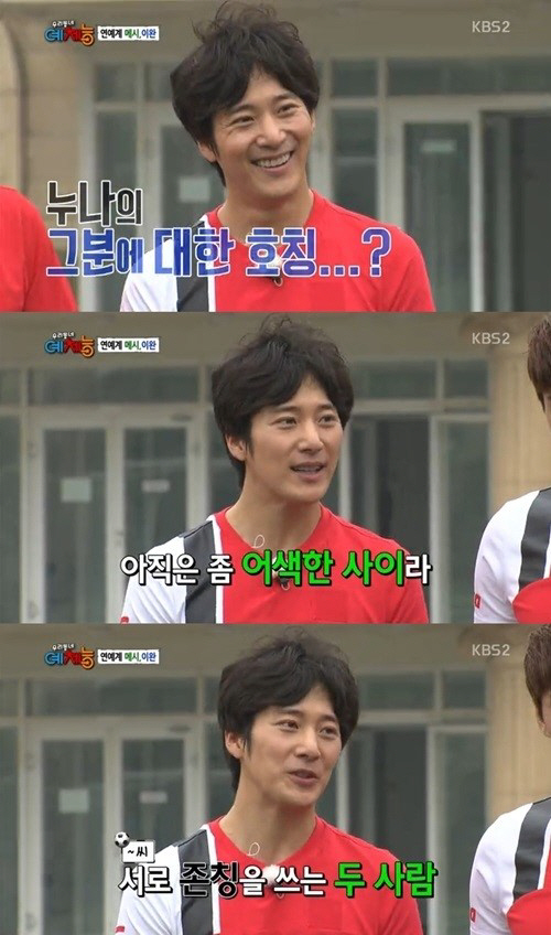 이어 강호동은 "뭐라고 부르느냐"고 뜬금없는 질문을 했고, 이완은 "누나라고 부른다"고 답했다. 그러자 정형돈은 "누나의 그분을 뭐라고 부르냐"라고 물었고, 강호동은 "레인이라고 부르냐"고 말해 웃음을 자아냈다.