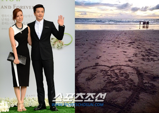 공개된 사진은 해변가 모래사장의 낙서를 담은 사진으로 하트 그림 안에는 '권상우 권룩희 손태영 Who's Next'란 메시지가 담겼다.
