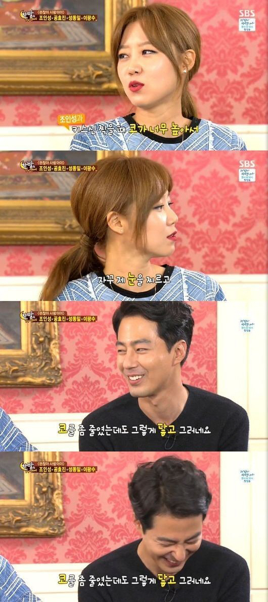 또 공효진은 조인성과의 키스신에 대해 "키스신을 찍을 때 조인성 코가 너무 높아서 자꾸 내 눈을 찔렀다"고 폭로했다.