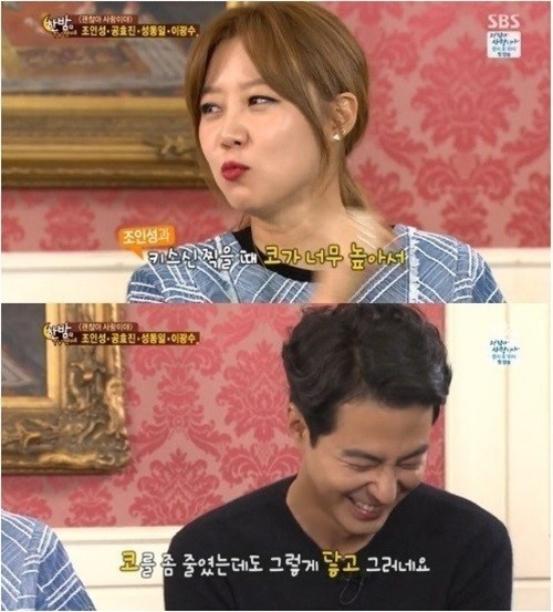 이날 방송에서 공효진은 조인성과의 키스신에 대해 "키스신을 찍을 때 코가 너무 높아서 자꾸 눈을 찌른다"고 너스레를 떨었다.