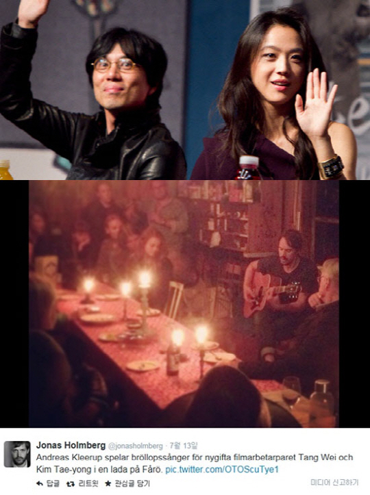 24일 연예매체 '디스패치'는 "탕웨이와 김태용 감독이 정식으로 부부가 됐다"라며, "지난 13일(현지시간) 스웨덴 포뢰섬에서 웨딩마치를 울렸다"고 보도했다.