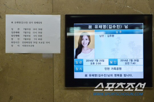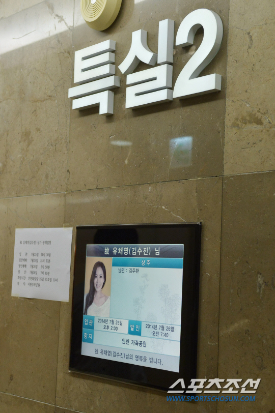 위암 말기 판정을 받고 투병생활을 해오던 연기자 유채영이 24일 사망했다. 서울 신촌 세브란스 병원 장례식장 특2호에 빈소가 마련됐다. 이날 오전 유채영 소속사 150엔터테인먼트 측은 "지난 해 10월 위암 말기 판정을 선고 받아 투병 중이던 유채영이 오전 8시 병원에서 생을 마감했다"고 공식 입장을 밝혔다. 지난해 건강검진을 받던 중 위암 말기 판정을 받고 투병생활을 해오던 유채영은 2주 전 상태가 악화돼 신촌 세브란스 병원에 입원 후 의식불명 상태에 빠졌다 사진=사진공동취재단/2014.07.22/
