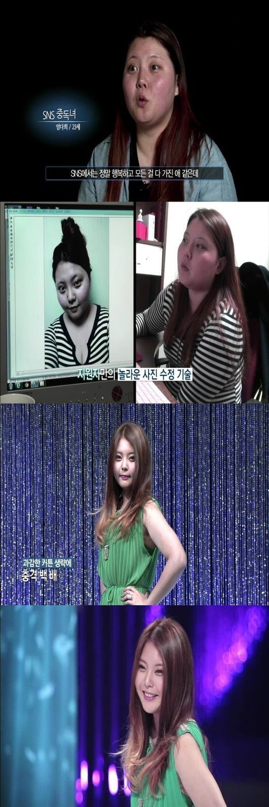 특히 그녀는 몸에 맞지 않은 작은 사이즈의 옷을 억지로 입고 셀카 보정 작업에만 열을 올렸다.