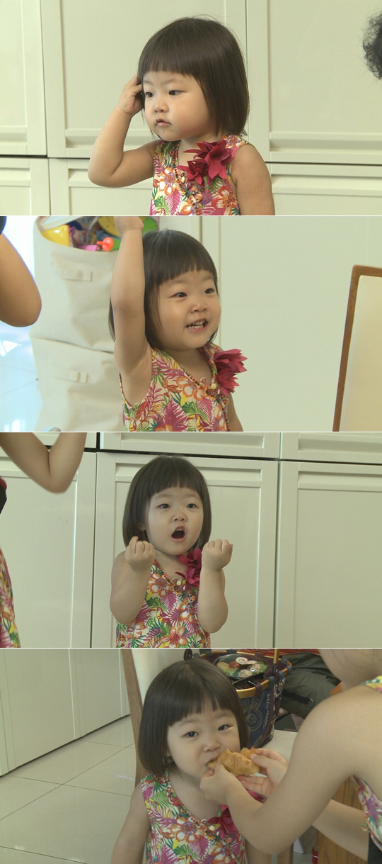 이에 세 딸의 재롱을 보던 정웅인은 흐뭇한 미소를 감추지 못했고, 특히 윤민수는 오랜만에 만난 다윤이의 매력에 홀딱 빠지기도 했다.