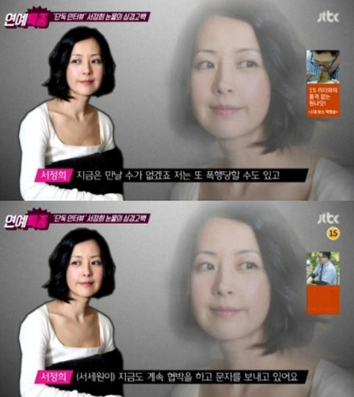 이 밖에도 서정희는 "지금 남편과 만날 수 없다. 또 폭행 당할 수도 있다. 지금도 계속 협박하고 문자를 보내고 있다"며 불안한 마음을 전하기도 했다.