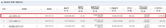 이는 '트랜스포머 3'의 95만6500명, '은밀하게 위대하게'의 91만9027명, '아이언맨 3'의 89만4377명을 이은 역대 개봉영화 최대 일일 스코어 4위에 랭크되는 기록이며 한국영화로는 역대 2위에 오르는 기염을 토했다.