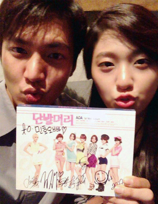 공개한 사진에는 AOA의 새 앨범에 멤버들의 싸인을 담은 씨디를 든 두 사람이 모습이 담겨있다. 함께 입술을 내민 귀여운 포즈를 취하고 있는 설현과 이민호의 모습은 훈훈한 비주얼 남매의 모습을 자랑한다.